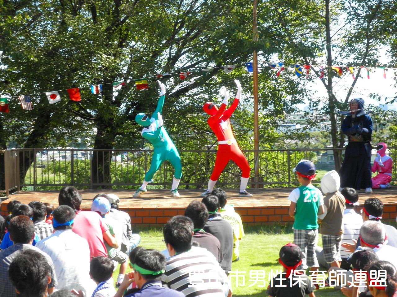 マル秘情報…何やら、あまりに好評だったので「来年はスカイホールでやりたい」と職員の方が意気込んでいましたよ。すごい規模拡大ですね!スカイホールで来年は行えるのか?夢は大きく!来年をお楽しみに☆おっと、このことは秘密です。 それにしても、りすとうさぎのキャラクターの中身は誰でしょう?気になりますねぇ。そう、あの人です。僕達のメンバーで癒し系の二人です。雨が降った後かのようにびしょ濡れになってましたよ!中身の人、お疲れ様☆ では、パパレンジャー第3弾を簡単に見て頂きましょう☟ もう、皆さん苦笑でした…。 詳しくは、また写真のコーナーで更新します。今回は、何よりうれしかったのが、2月に行われます『男祭り』の実行委員に11名のお父さんが立ち上がってくれたことです。本当にうれしかった!10月と11月と楽しい企画にするための実行委員会を開きます。楽しみにしていてください。皆さんでパパレンジャーを盛り上げましょう!!左下は実行委員の方達。また、写真撮りましょーね♪ 色々とイメージを沸かせてみてください。 前回、スタンプカードを忘れた方が多かったですので、これもお忘れなく。そして、パパレンジャーの交通整理は、人員増加。9時15分くらいまで整理していますのでお早めにお越しください。NEWキャラクターの登場はあるか!?お楽しみに! 天気だけが心配です。みんなでお祈りしましょう!雨天の場合は、第1弾で行った体育館(ホール)で行いますのでよろしくお願いします。 では、25日、土曜日にお会いしましょう!