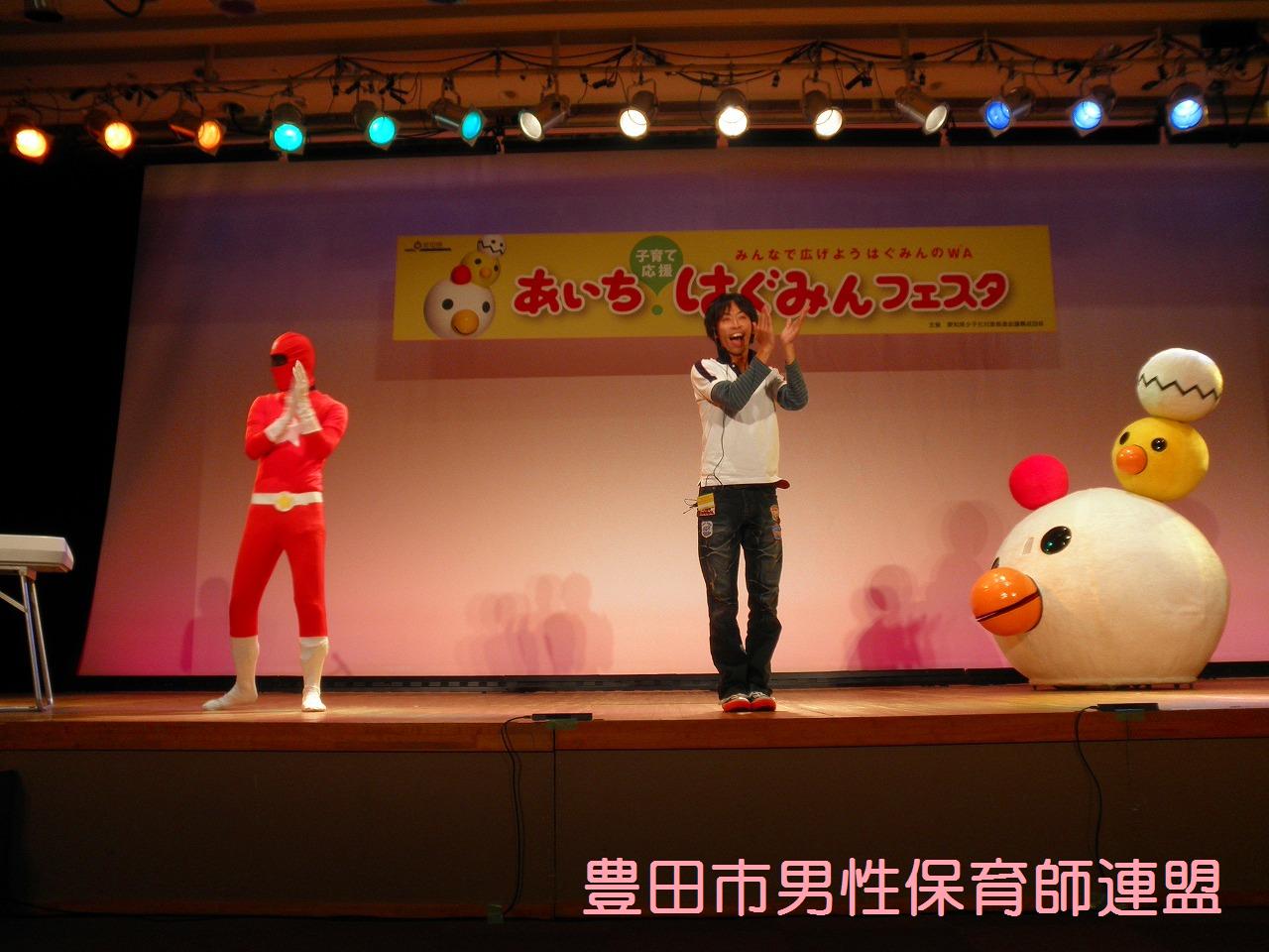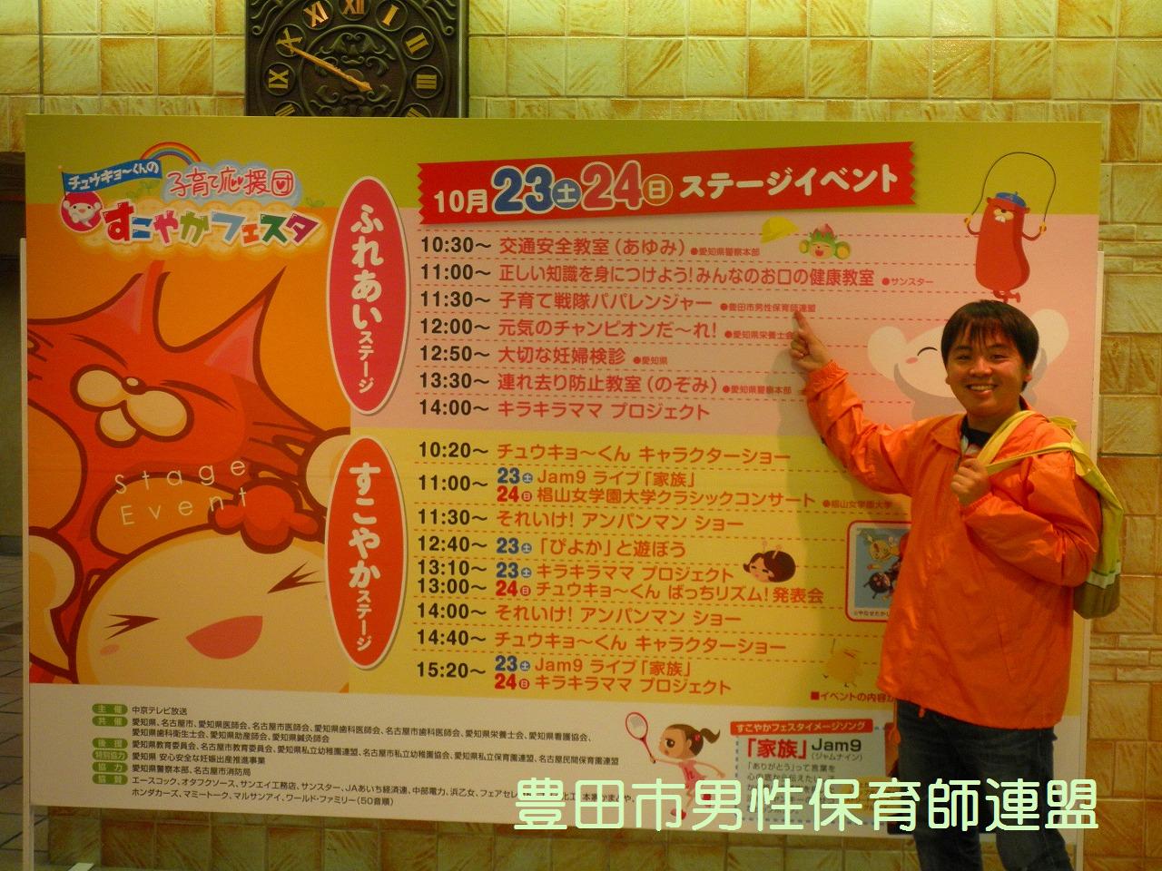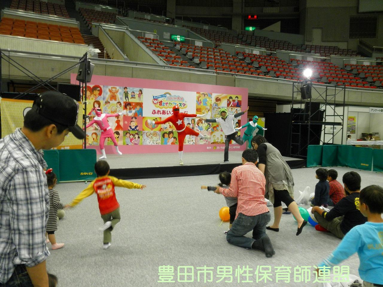 × [PR]上記の広告は3ヶ月以上新規記事投稿のないブログに表示されています。新しい記事を書く事で広告が消えます。 豊橋市でもついにイクメン講座に行政が動き始めましたよ~!ファザーリングジャパン・東海と豊田市男性保育師連盟がお邪魔してきま~す♪全5回のこの講座、充実した内容です。豊橋のお父さん達、ぜひ一緒に子育てを楽しみましょう! 今年度は、6月に刈谷、10月と11月に愛知県、11月に中川区、そして1月に豊橋と、全て行政(市役所・区役所・県庁)が主体となってお父さん講座が行われています。国が“育メンプロジェクト”を始動している今、豊田市も行政主催やイクメン講座はないかなぁ??でも、交流館やとよた男女共同参画センターで少しずつ始まってるか。ん~、でも、“力を入れている”と伝わって来ないのはなぜでしょう…。市外の行政から呼ばれて豊田市からは声はかからない…。なんででしょう…。豊田市が全国一がパパの子育てしやすい街にするのが僕達の目標です!頑張ります!! PR こうやって素敵なお二人のステージでの姿を見たり、話を聞くとができたり、自分たちにとてもプラスになりました。貴重な機会を与えて下った愛知県の方に感謝です。ありがとうございました☆ 今回ちょっと事件がありました。数年間の活動の中で一番の大惨事。なんと、バルーンの時にキラキラボールを飛ばしたら天井が壊れちゃったんです!しかもその空いた隙間にキラキラボールがいっぱい入っちゃって。お~う!!参加者は笑っていましたが、僕達は冷や汗だらけでした。危うく弁償か?と思いましたが、役所の方が優しく許して下さいました。本当にすみませんでした…。 パパ達お疲れさまでした。盛大な『男祭り』にしましょうね!! ※そうそう、うれしいニュースです。な~んと、パパレンジャー一期生の携帯サイトができる予定!実行委員のパパが立ち上がってくれました。ついにこの時がきました~!楽しみだなぁ~☆ では今日の流れを簡単にご覧くださいませ。 いやぁ、今回もすごいですね。アンパンマンに気づかず、たくさんの子が集まってくれました。キラキラボールは飛びすぎて違うブースの方に迷惑をおかけしました。すみません。上からいきなりこんなの飛んできてびっくりですよね。 こうして、2日間の僕達のかなり体を張った戦いは終了しました。自分たちが希望した土俵でしたが、相手が強すぎました。アンパンマン、敵対心むき出しでごめんなさい。いつか、アンパンマンを越えてみせますからね!僕達の中で夢プランが構想中です。いつか実現させたいこのプラン(笑) みんな、お疲れ様でした~~~☆ さぁ、時間になりました。会場の様子の流れをご覧ください。 おぉ~、だいたいこんな感じです。誰もいない所から、これだけ集まってくれたんです。感謝です。そして、僕達よく頑張りました。2枚目、3枚目の写真の奥の方を見るとおわかりだと思います。アンパンマンの人気ぶり。完敗でございやした…。席取りがすごかったみたいです。アンパンマンに気づかずに遊んでくれた皆さん本当にありがとうございました。 やっぱり、僕達、ちょっと路線が変わってきたなぁ。 ←そして僕達の似顔絵です。会場を満喫しました。 明日も頑張るぞ☆