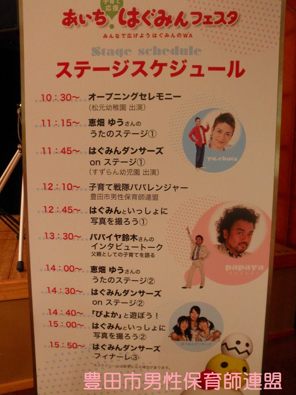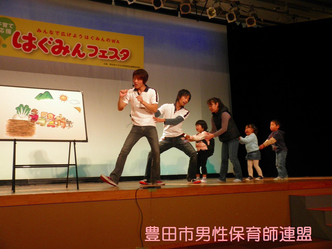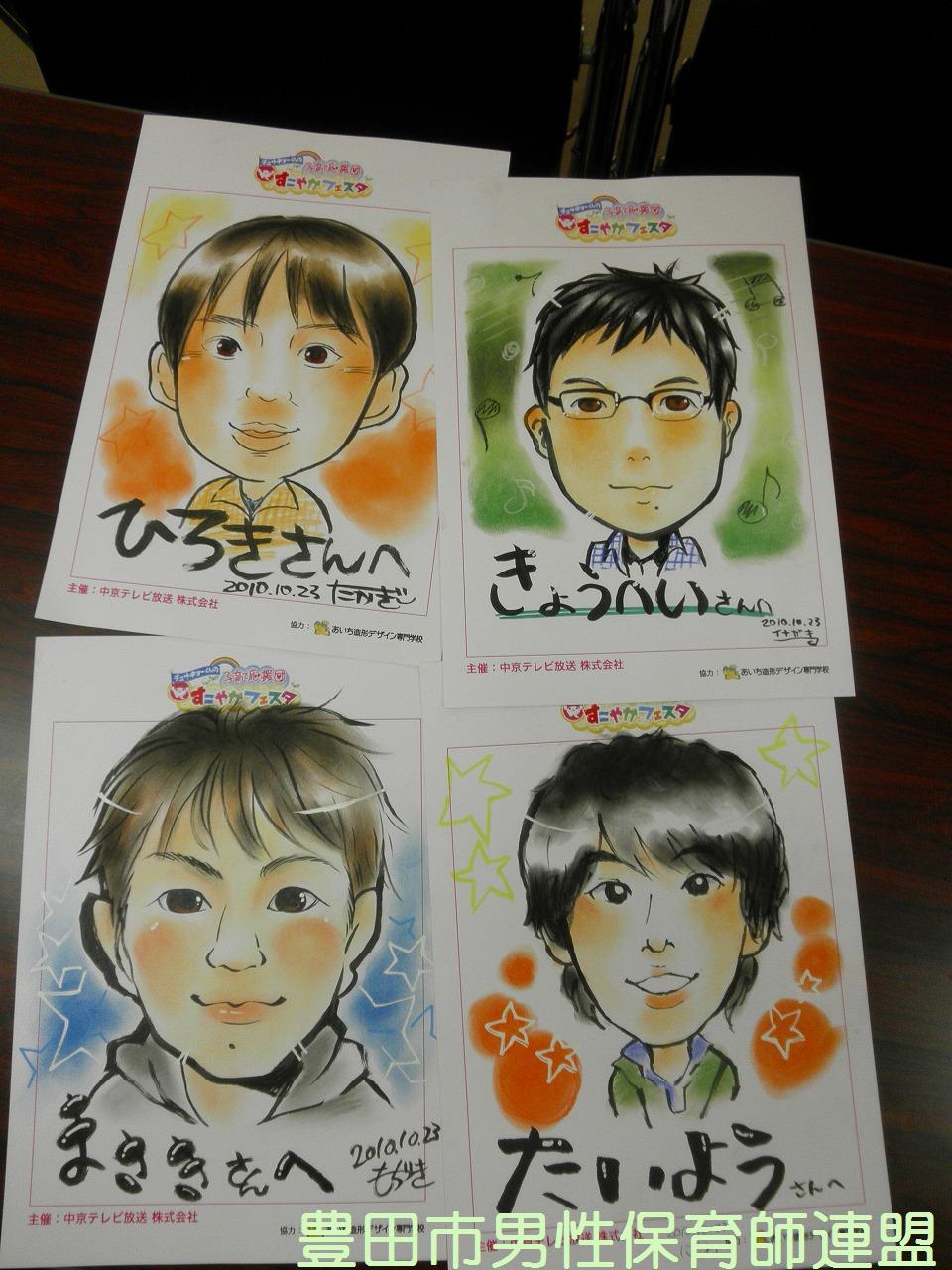 × [PR]上記の広告は3ヶ月以上新規記事投稿のないブログに表示されています。新しい記事を書く事で広告が消えます。 豊橋市でもついにイクメン講座に行政が動き始めましたよ~!ファザーリングジャパン・東海と豊田市男性保育師連盟がお邪魔してきま~す♪全5回のこの講座、充実した内容です。豊橋のお父さん達、ぜひ一緒に子育てを楽しみましょう! 今年度は、6月に刈谷、10月と11月に愛知県、11月に中川区、そして1月に豊橋と、全て行政(市役所・区役所・県庁)が主体となってお父さん講座が行われています。国が“育メンプロジェクト”を始動している今、豊田市も行政主催やイクメン講座はないかなぁ??でも、交流館やとよた男女共同参画センターで少しずつ始まってるか。ん~、でも、“力を入れている”と伝わって来ないのはなぜでしょう…。市外の行政から呼ばれて豊田市からは声はかからない…。なんででしょう…。豊田市が全国一がパパの子育てしやすい街にするのが僕達の目標です!頑張ります!! PR こうやって素敵なお二人のステージでの姿を見たり、話を聞くとができたり、自分たちにとてもプラスになりました。貴重な機会を与えて下った愛知県の方に感謝です。ありがとうございました☆ 今回ちょっと事件がありました。数年間の活動の中で一番の大惨事。なんと、バルーンの時にキラキラボールを飛ばしたら天井が壊れちゃったんです!しかもその空いた隙間にキラキラボールがいっぱい入っちゃって。お~う!!参加者は笑っていましたが、僕達は冷や汗だらけでした。危うく弁償か?と思いましたが、役所の方が優しく許して下さいました。本当にすみませんでした…。 パパ達お疲れさまでした。盛大な『男祭り』にしましょうね!! ※そうそう、うれしいニュースです。な~んと、パパレンジャー一期生の携帯サイトができる予定!実行委員のパパが立ち上がってくれました。ついにこの時がきました~!楽しみだなぁ~☆ では今日の流れを簡単にご覧くださいませ。 いやぁ、今回もすごいですね。アンパンマンに気づかず、たくさんの子が集まってくれました。キラキラボールは飛びすぎて違うブースの方に迷惑をおかけしました。すみません。上からいきなりこんなの飛んできてびっくりですよね。 こうして、2日間の僕達のかなり体を張った戦いは終了しました。自分たちが希望した土俵でしたが、相手が強すぎました。アンパンマン、敵対心むき出しでごめんなさい。いつか、アンパンマンを越えてみせますからね!僕達の中で夢プランが構想中です。いつか実現させたいこのプラン(笑) みんな、お疲れ様でした~~~☆ さぁ、時間になりました。会場の様子の流れをご覧ください。 おぉ~、だいたいこんな感じです。誰もいない所から、これだけ集まってくれたんです。感謝です。そして、僕達よく頑張りました。2枚目、3枚目の写真の奥の方を見るとおわかりだと思います。アンパンマンの人気ぶり。完敗でございやした…。席取りがすごかったみたいです。アンパンマンに気づかずに遊んでくれた皆さん本当にありがとうございました。 やっぱり、僕達、ちょっと路線が変わってきたなぁ。 ←そして僕達の似顔絵です。会場を満喫しました。 明日も頑張るぞ☆