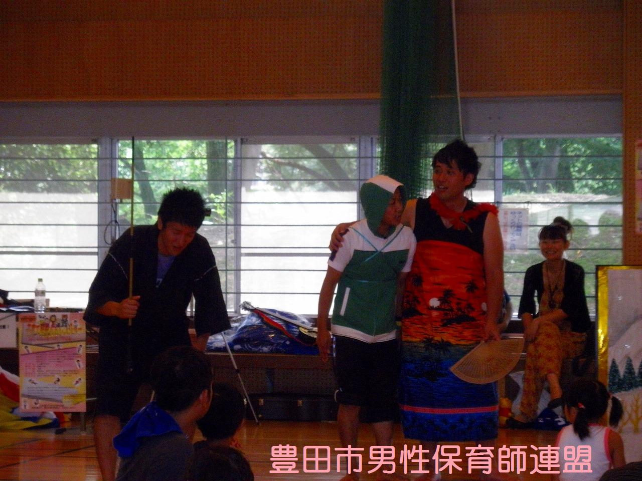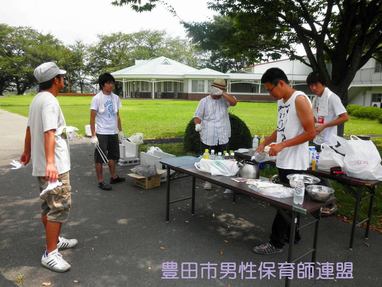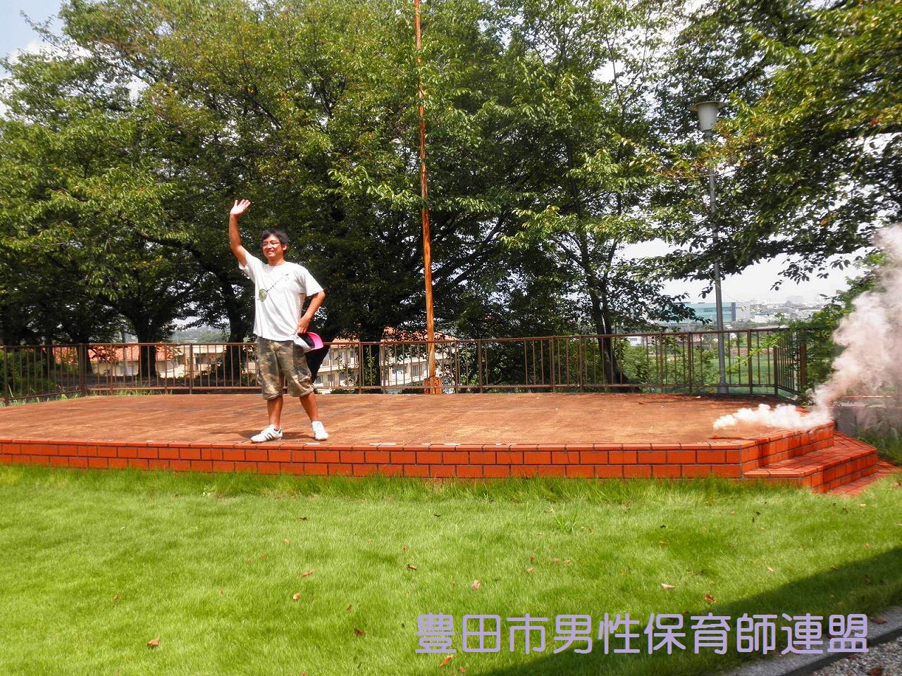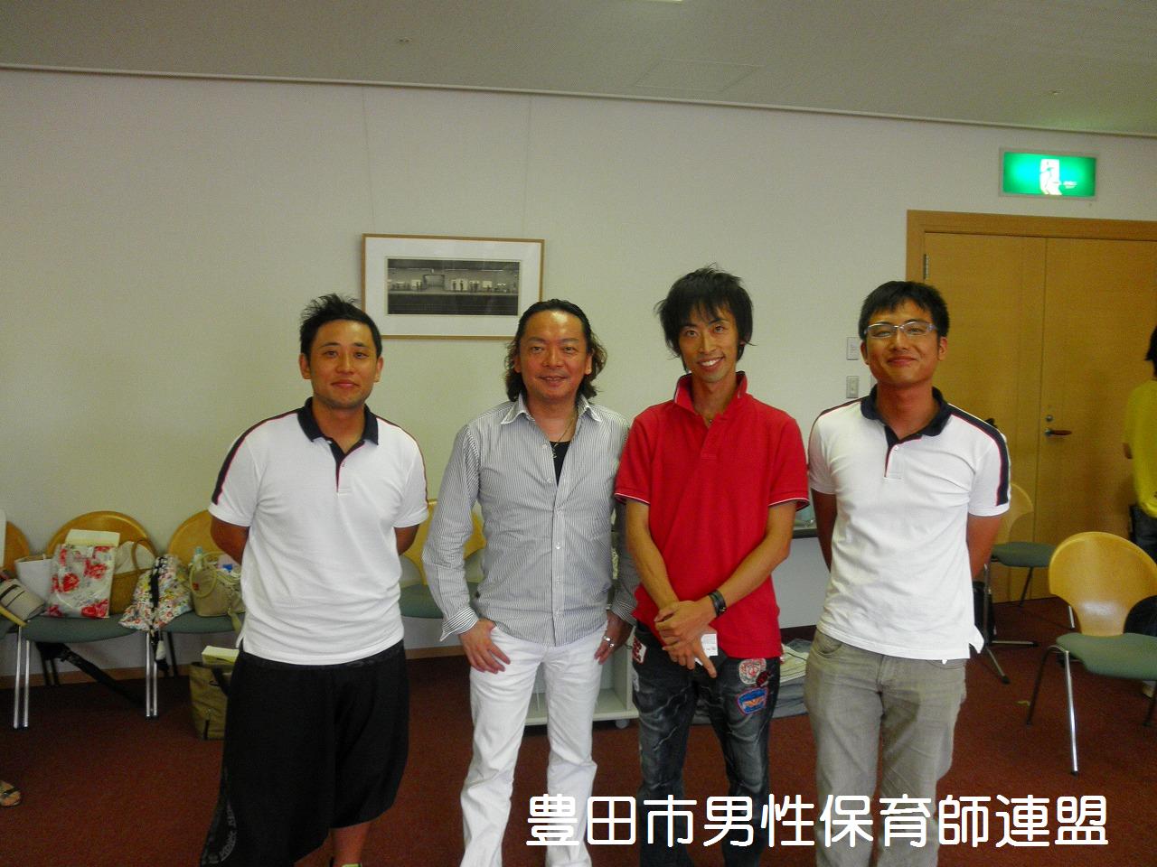 僕は、1部で踊り続け、リトルおいでんで踊り、2部で舞台で踊りかなりへろへろパーでした☆ 以上で今年のおいでん報告を終わります。 ←(右)NPO法人ファザーリングジャパンの代表理事の安藤さん。カリスマ的なオーラが印象的でした。 あっという間の4時間でした。楽しかったです。ありがとうございました。 ←この写真は、劇の後の写真ですが、パパレンジャーで滑った「うらしまたろう(さわやかたろう)」をリベンジしたんです。笑ってもらえた…。よかった…。今までも、「男ひなまつり」「ブレーメンの音楽隊」「がらがらどん」などをやりましたが、アドリブだらけで面白いんだぜ!来年は何をしよっかな。 終わってからは、みんなで楽しくバーベキューをしました。でも、やはりこの人がいないと始まらない。この人が来るまで炭をおこしただけで遊んで待ってました。この人のおかげで僕達は ゆーき君は僕達に欠かせないメンバーです。本当にありがとう!ということで彼は、連盟の名誉会員として名前を残すことになりました。また、いつでも待ってますよ~。これからもずっ~と仲間ですから!! ←仲間と記念写真(2010.7.10) 申し込み→とよた子育て総合支援センター(0565-37-7071)