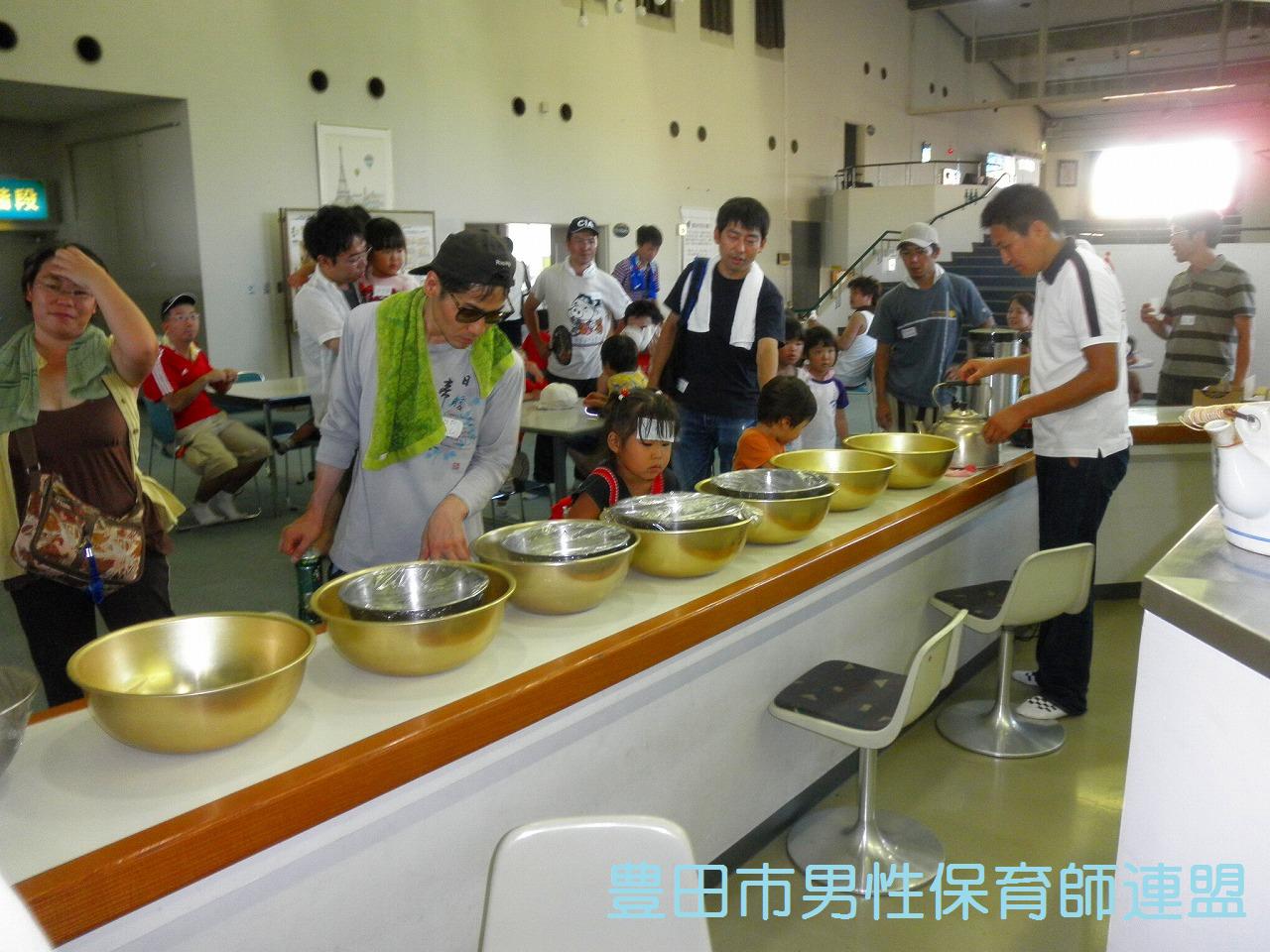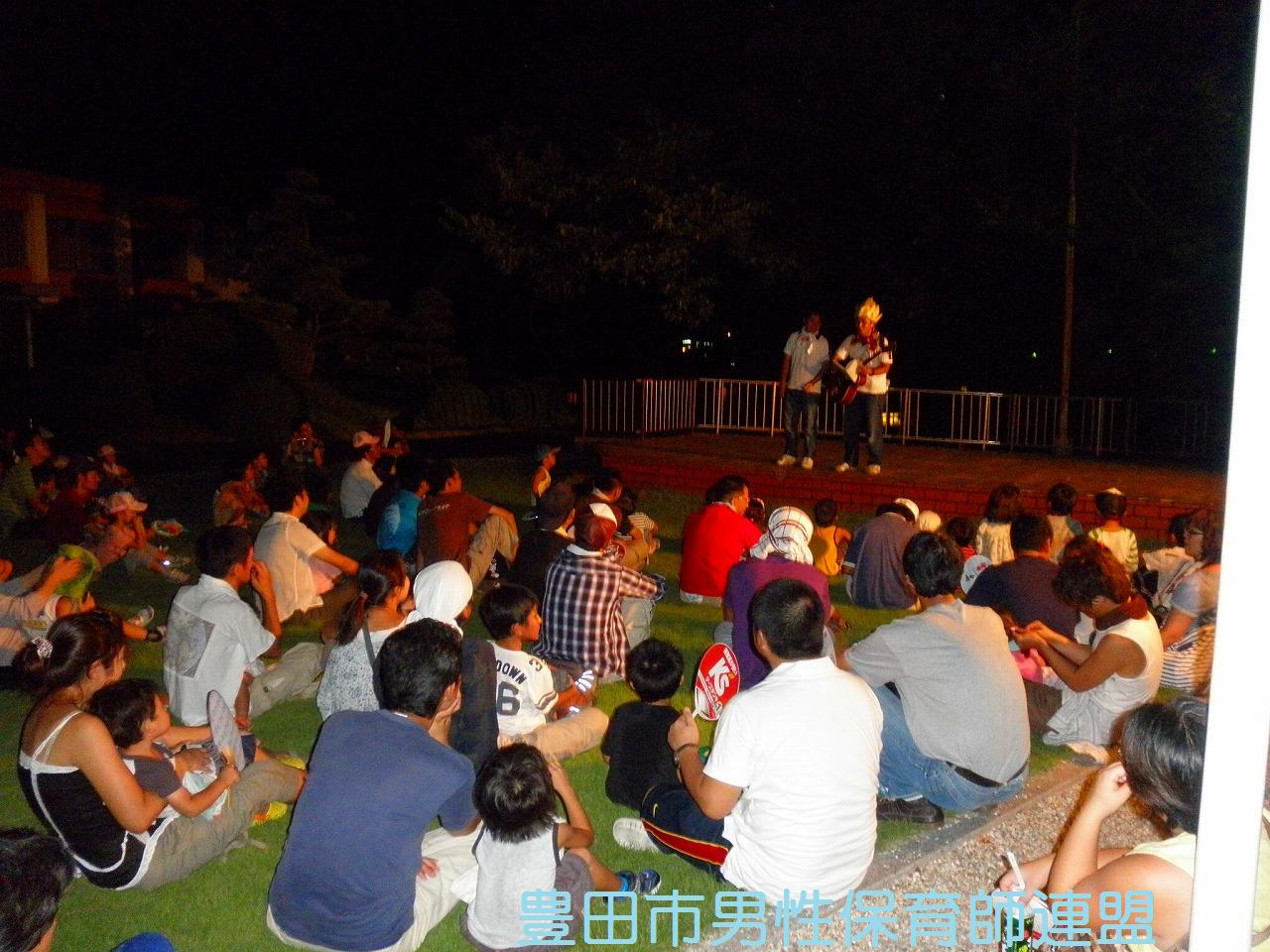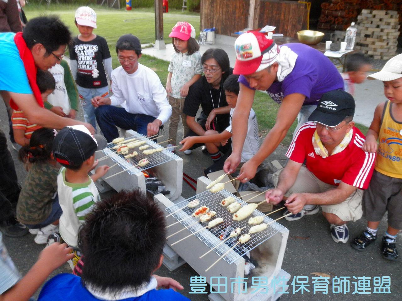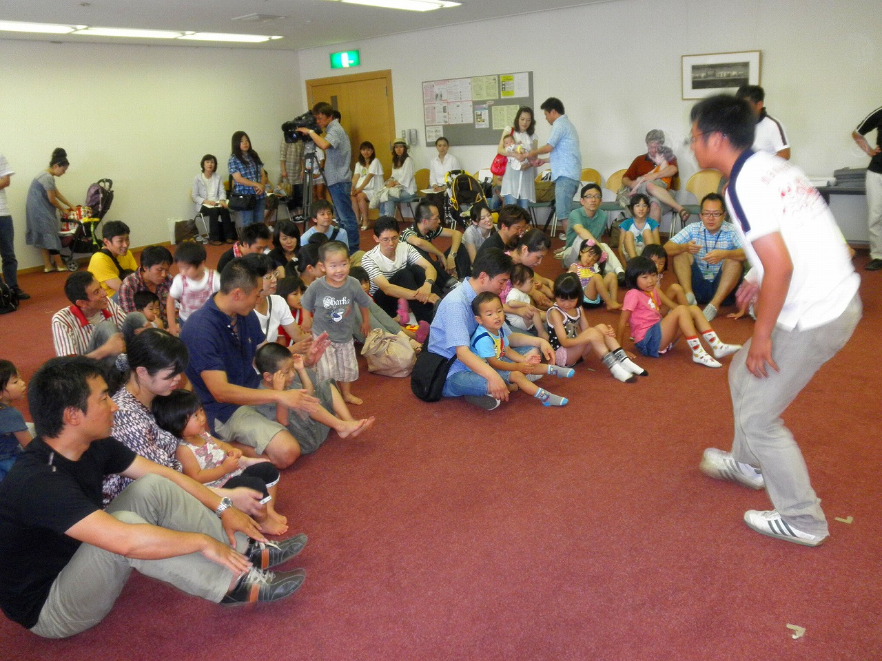 僕は、1部で踊り続け、リトルおいでんで踊り、2部で舞台で踊りかなりへろへろパーでした☆ 以上で今年のおいでん報告を終わります。 ←(右)NPO法人ファザーリングジャパンの代表理事の安藤さん。カリスマ的なオーラが印象的でした。 あっという間の4時間でした。楽しかったです。ありがとうございました。 ←この写真は、劇の後の写真ですが、パパレンジャーで滑った「うらしまたろう(さわやかたろう)」をリベンジしたんです。笑ってもらえた…。よかった…。今までも、「男ひなまつり」「ブレーメンの音楽隊」「がらがらどん」などをやりましたが、アドリブだらけで面白いんだぜ!来年は何をしよっかな。 終わってからは、みんなで楽しくバーベキューをしました。でも、やはりこの人がいないと始まらない。この人が来るまで炭をおこしただけで遊んで待ってました。この人のおかげで僕達は ゆーき君は僕達に欠かせないメンバーです。本当にありがとう!ということで彼は、連盟の名誉会員として名前を残すことになりました。また、いつでも待ってますよ~。これからもずっ~と仲間ですから!! ←仲間と記念写真(2010.7.10) 申し込み→とよた子育て総合支援センター(0565-37-7071)