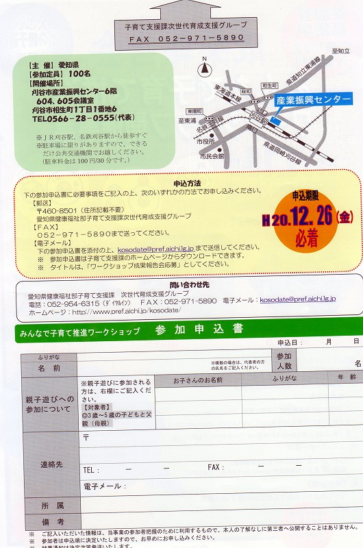 なかなか更新ができませんが、トップのページに次回の親子遊びのページを作りました。11月12月は僕達がちょっと忙しいということを理由に親子遊びを入れていません。保育の仕事第1ですから(笑)。次回は、1月18日になんと、刈谷であります。前回行ったパパレンジャーの「成果報告会」です。な、なんと特別企画で僕達がタオルを使った遊びを行いますよ~。しかも、参加してくださった方には、あの幻の「パパレンジャータオル」を配布します。すごい!またもらえるパパレンジャータオル!また、ほしい方、ほしかったけどもらえなかった方、ぜひお申込み下さい。隣町で待ってま~す☆ ←げっ、曲がってしまった・・・。 |