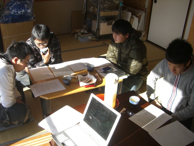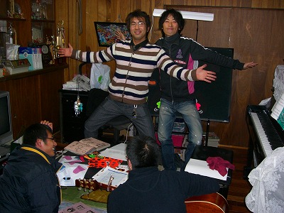 今日もこの年末に紙芝居最終チェックをしようと、連盟一熱い男ゆーき先生がやってきました。ゆーき先生は先日、直した原稿を一人で男女共同参画センターへ持って行き、待ち受けていた5名?の職員に熱く語ってきたのです。そして、その思いが伝わったのか(思いだけではどうもなりませんが)見事にオッケーが出たわけです。しかし、色々気になる部分が出てきたようで更によくしようと修正にやってきました。熱い男だぁ~。絵の下絵を1月初めくらいに見せてほしいとあちらから言われたようで僕に焦りが・・・。優しいゆーき先生は、「僕がたいよう君のマネージャーになるわ。期限が守れるよう確認しにくるから。」って。どこまで熱い男なんだ~!僕は、まるで期限をせまられている漫画家の気分です。期限の3月末まで、ゆーき先生は何回僕をせかしにくるのかなぁ。やだなぁ。いや、幸せだな~。