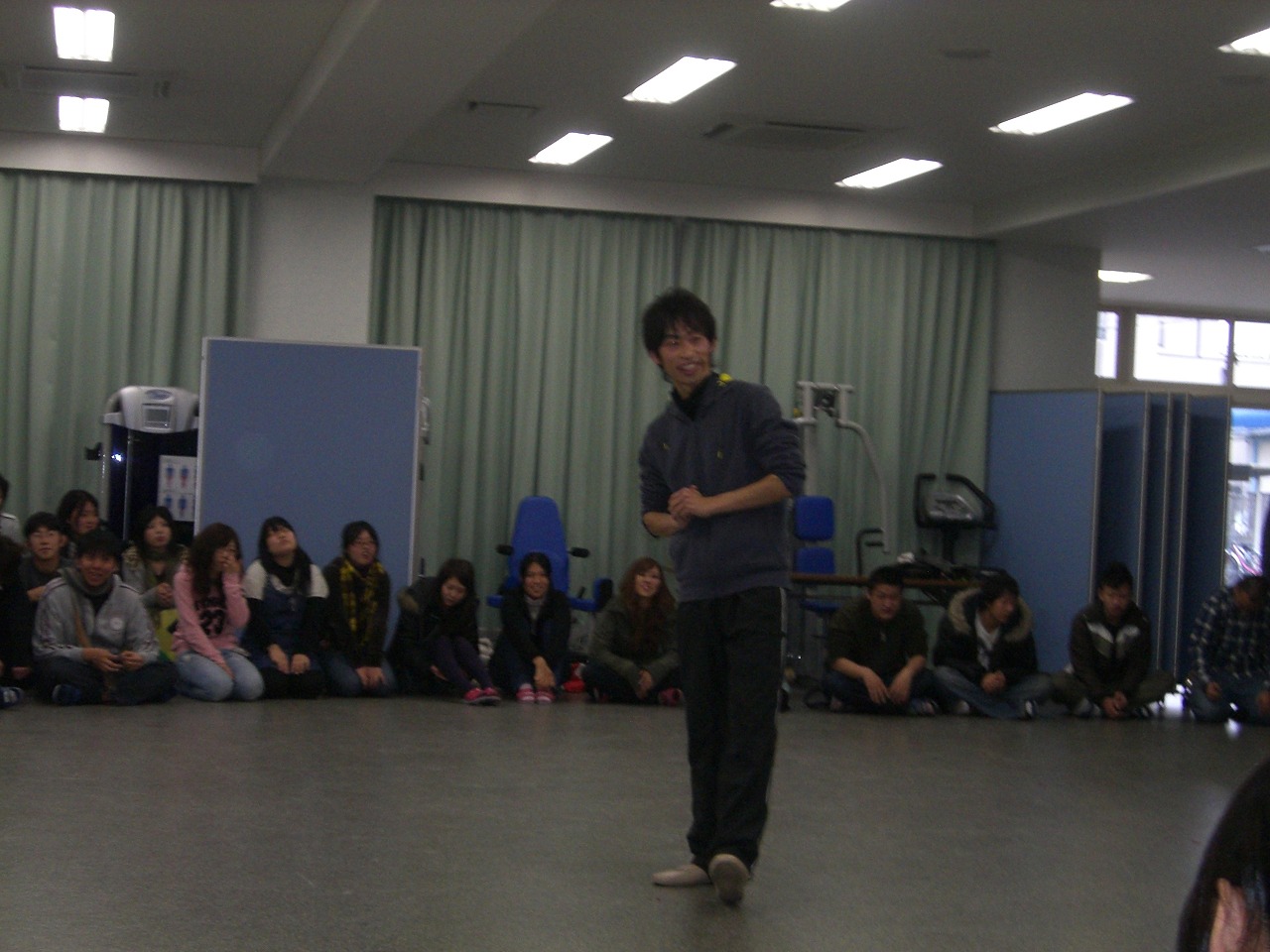 再び岡崎の慈恵福祉保育専門学校に招かれました。たかゆき先生と一緒に遊びの実技2時間とパネルディスカッション1時間行いました。僕はこの日が餅つきで、3臼連続でついたせいで、腕が重くて重くて・・・。