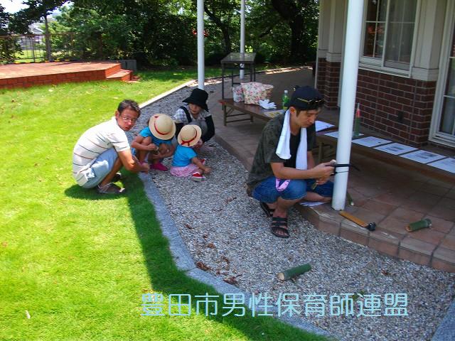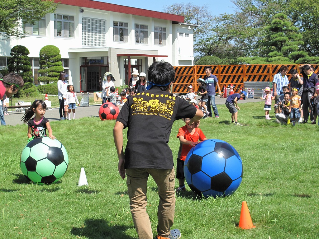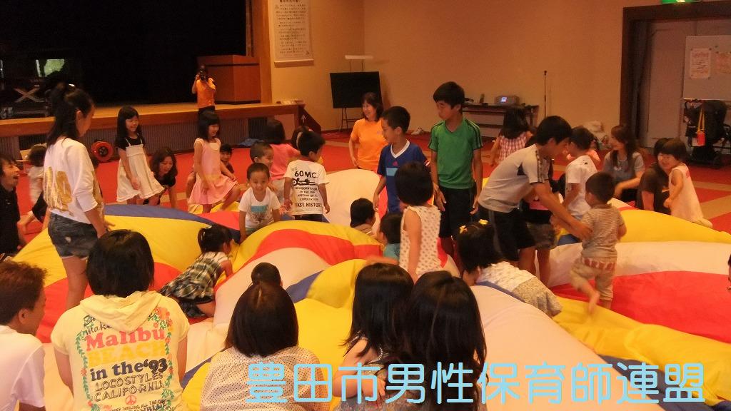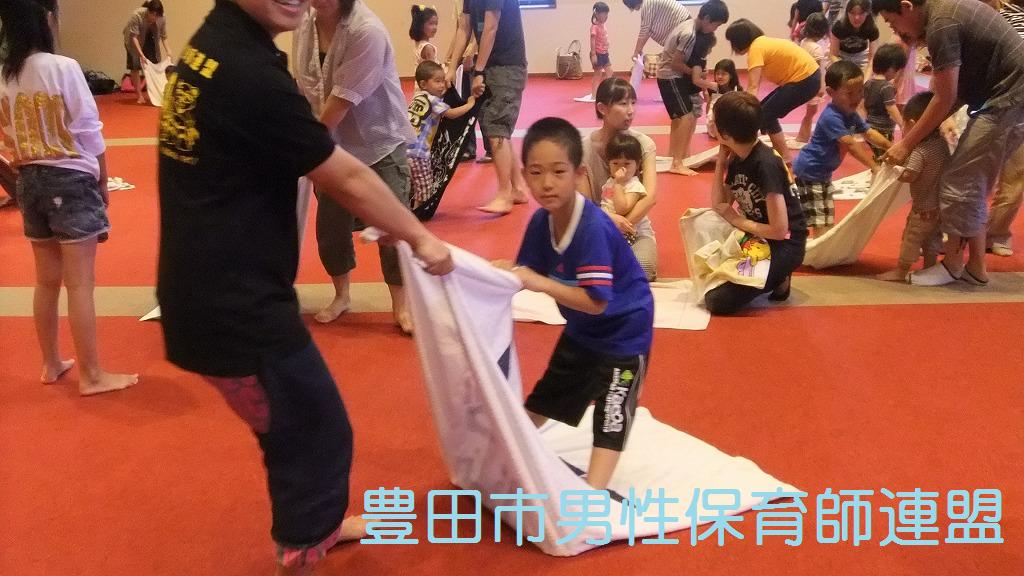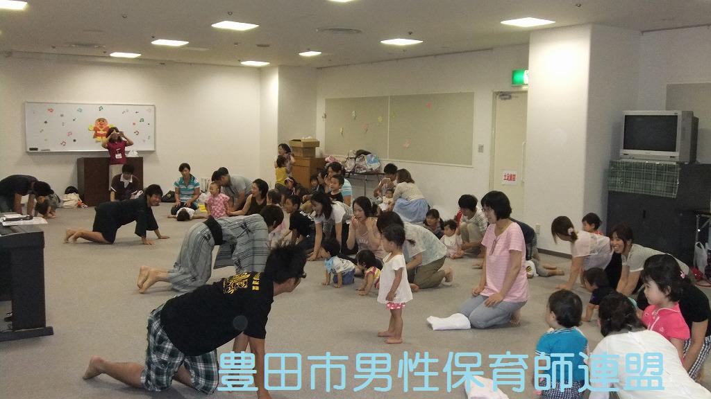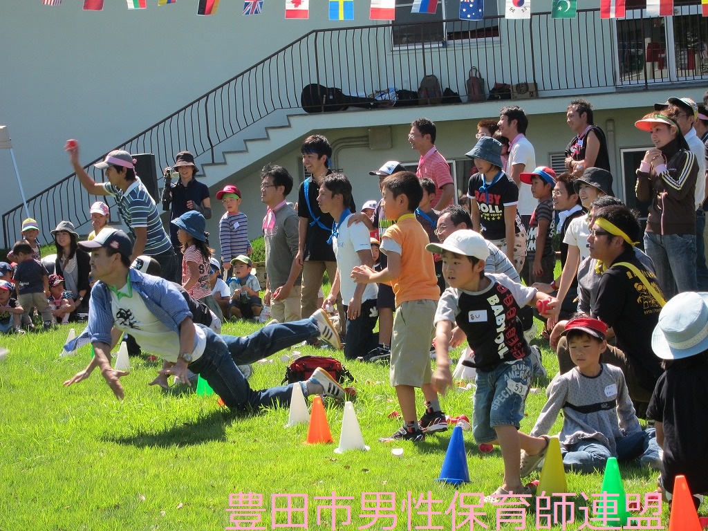 この日、男性保育士みんなが集まる予定でした。が!!トヨタの土日操業に伴い、休日出勤のメンバーが続出です。たった4人でしたぁ!参加者もママが多かったですね。でも、今回ばかりはしょーがないです。パパ達もたくさん参加してくれました。そして、今回は(ちょっと夜遊びをしていた3人のメンバーのために)ゆっきー先生が中心で頑張ってくれました。すっごく楽しかったです。さすがゆっきーでした。子ども達もパパもママも笑顔がたくさんでした。帰りたくなくて泣いてしまう子もいたんですよ~。うれしいな。また遊びに来てね☆