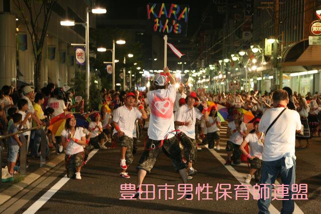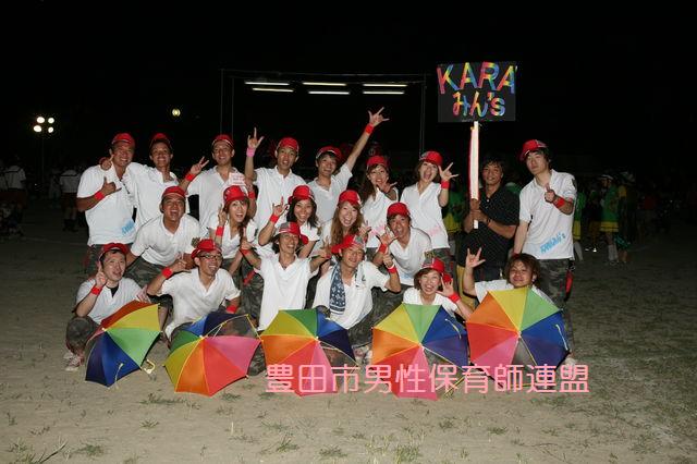 おいでんの夏が終わるとちょっと寂しい感じです。燃え尽きた症候群でした。 結果報告です。おいでんのファイナルですが、2部のレベルの高い激戦区の中、な~んと、入賞しました!す、すげ~じゃん!!その名も『技術賞』。おぉぉぉ!!2部の約50チームで7チームしか賞がもらえません。え~~!!はっきりいって、優勝は目指していたものの、まさか賞をゲットできるとは内心思っていませんでした(笑)そうなの~?? かなりいい仲間たちだったので、その雰囲気や元気、楽しさが伝わった結果だったと思います。何年もおいでん踊ってるけど、あんなに感動した瞬間ってなかったなぁ…と、一緒にチームを作ったきょーへー先生と余韻に浸ってました。ほんと思い出すと涙が出ちゃう…。 今年のおいでん祭りは最高だったぜ☆写真をちょこっと公開。来年は優勝目指してがんばりま~す!その名も“KARAみん’s”イエイ☆☆☆ ☝前列、僕ときょーへー先生です。