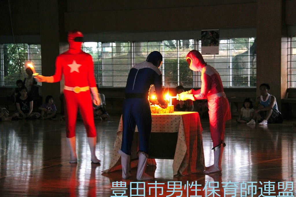 皆さんお久しぶりです。トヨタの土日操業に伴いまして、土日保育で少し忙しい日々でございます。更新が遅くなって申し訳ございません。8月20日に行われましたパパレンジャー第2弾『火と水の祭典』の報告です。