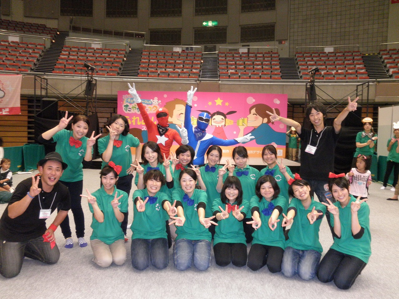 しかもですね、中京テレビの企画担当の方から、「アンパンマンに対抗できるのはパパレンジャーしかない!と会議で決まりました。」て言うじゃないですか。なんてお上手なんでしょう☆もう、うれしいじゃ~ん!そうです。なんと今年もアンパンマンと同じ時間のステージなんです。1年目以外毎年です。今年は10分後にアンパンマンが始まるという配慮がありましたが…。まぁ、慣れてます。今年もライバルはアンパンマン☆ 一日目★ ありり~?最初から意外と人気のコーナーになっていました。どういうこっちゃ?みんなアンパンマンに気付かなかった?いや、パパレンジャーの人気か?うれしい!ありがとうございました! 二日目★ この日は、椙山の学生(椙山のお姉さん)の子が手伝ってくれました。ありがと~!ちょっと人がバラバラだったもんでうれしかったです!先生もとてもいい方でした。ありがとうございます。いつでも声をかけてくださいね。 さすがライバルアンパンマンめ!やるじゃないか(笑) そして、チュウキョ~くんといっしょのまやお姉さんと写真撮りましたよ。ばっちリズム体操とてもかわいかったです。お姉さんありがとうございました。殿堂入りです☆それにしても、この写真遠い…。トリミングしないと★ PR この日、動物園に訪れた方は、な、な、な~んと344名です!す、す、すご~い!地域のお祭りが多い中、本当にたくさんの方にお越し頂きました。実のところ、朝からあまり来ないかも…と心配だったんです。チラシも遅れちゃったしね。 そして、忘れてはいけない。こちらもなぜか大盛況!11時半~と14時から行った“パパレンジャーと遊ぼう”です。実は、皆さん動物園に夢中で、誰も親子遊びなんかに興味はないよね~と勝手に思っておりました。だから、ここだけの話、「今日はなしにしよっかね」と話していたんです。誰かが。僕が。そしたら、「親子遊びはどこでやるんですか?」っていう声が色んなところで出たじゃないですか~!楽しみにしてくれていた方がいたなんて!?急きょお着替えもしまして…その場で遊びも考えまして…(笑)うれしかったで~す☆午前も午後も大盛況でした。 また、後日写真にアップしま~す☆