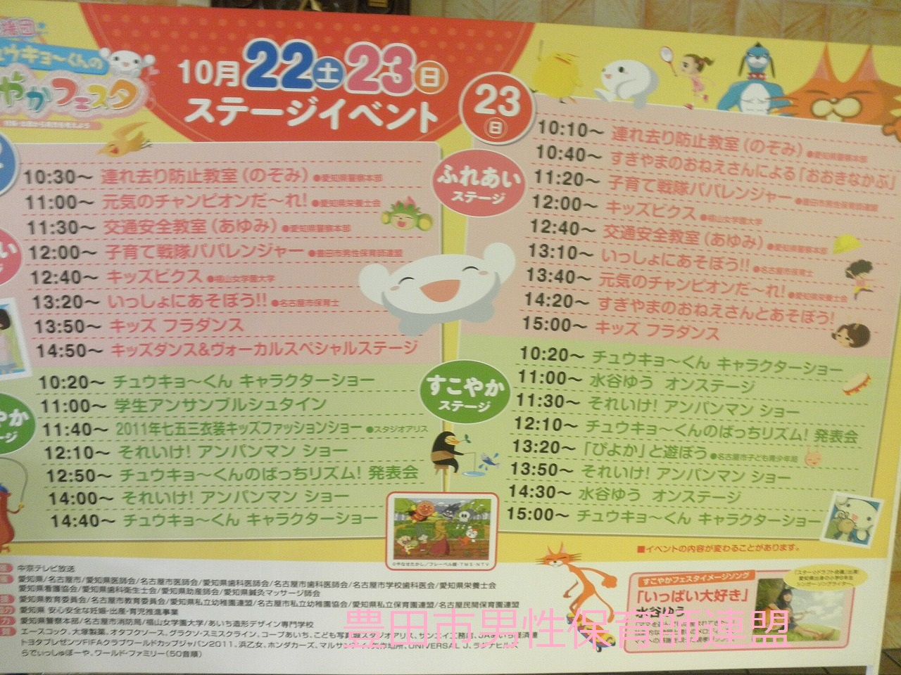 22日(土)、23日(日)、今年もガイシホールでチュウキョ~くんのイベントに行ってきました。な、な、な~んと、このイベント4年目。す、すご~い!だって、4年連続ステージでやってるグループ僕達くらいです。あとは、毎年グループ変わって新鮮です(笑)